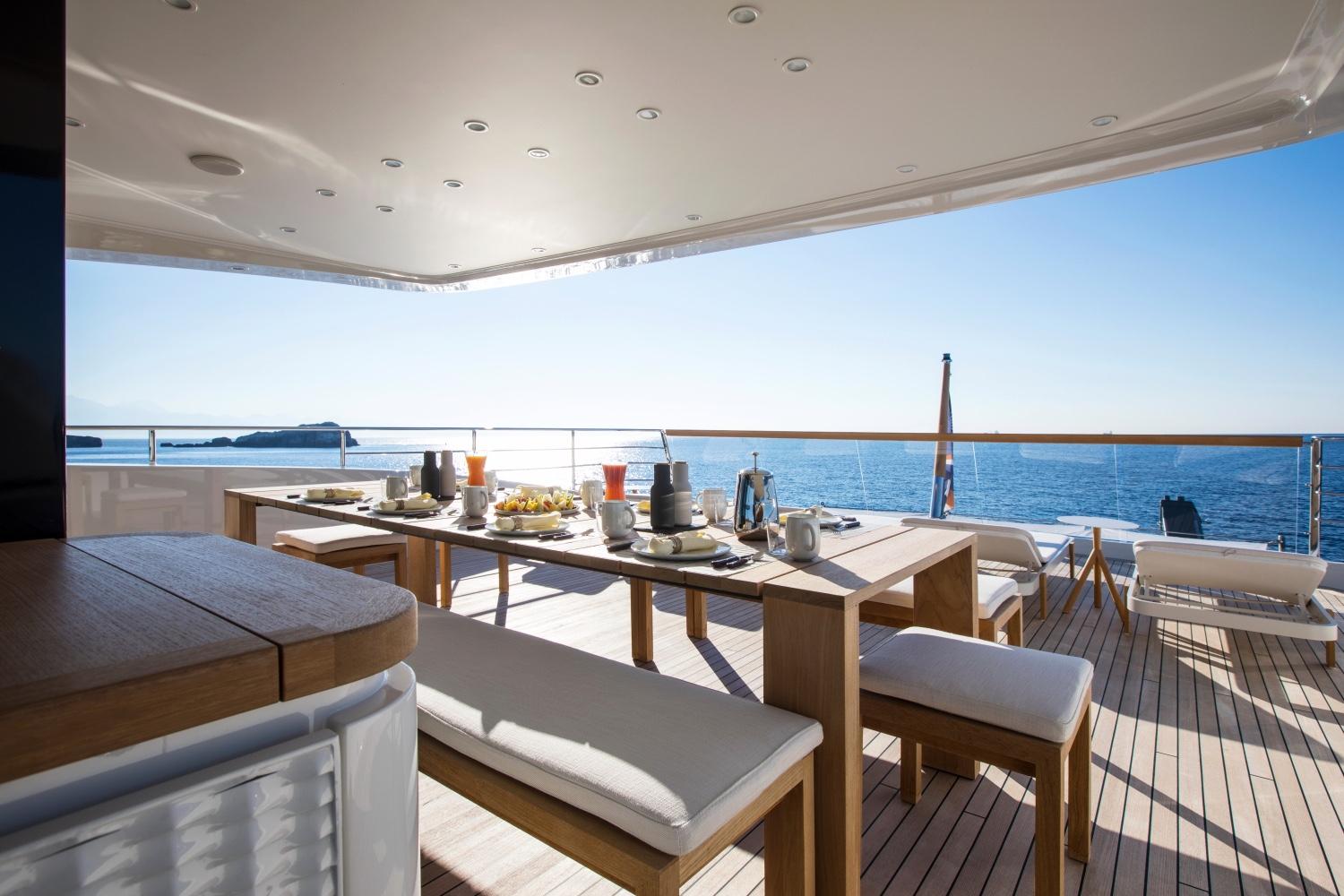 The lower deck features a wellness room with an endless swimming pool, gym and sauna with Turkish bath. It also houses three crew cabins, with the captain’s cabin placed on the main deck, next to the wheelhouse, so as to be at ...