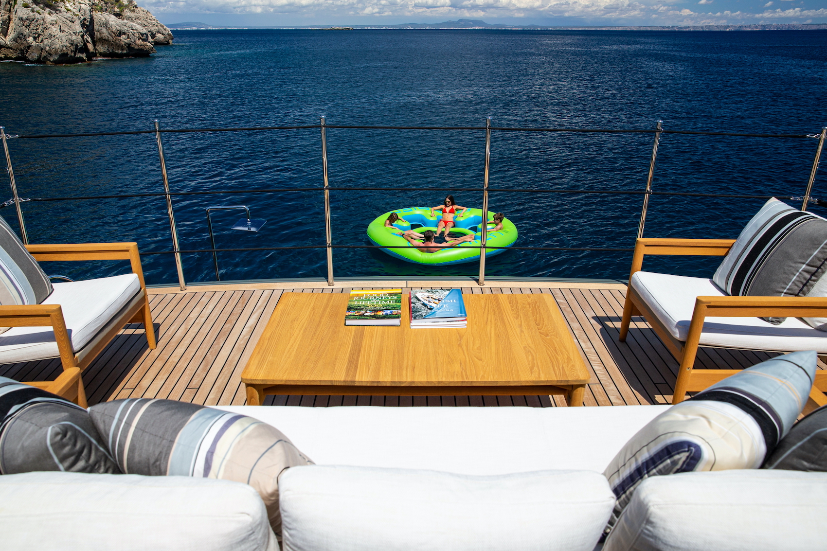 The lower deck features a wellness room with an endless swimming pool, gym and sauna with Turkish bath. It also houses three crew cabins, with the captain’s cabin placed on the main deck, next to the wheelhouse, so as to be at ...