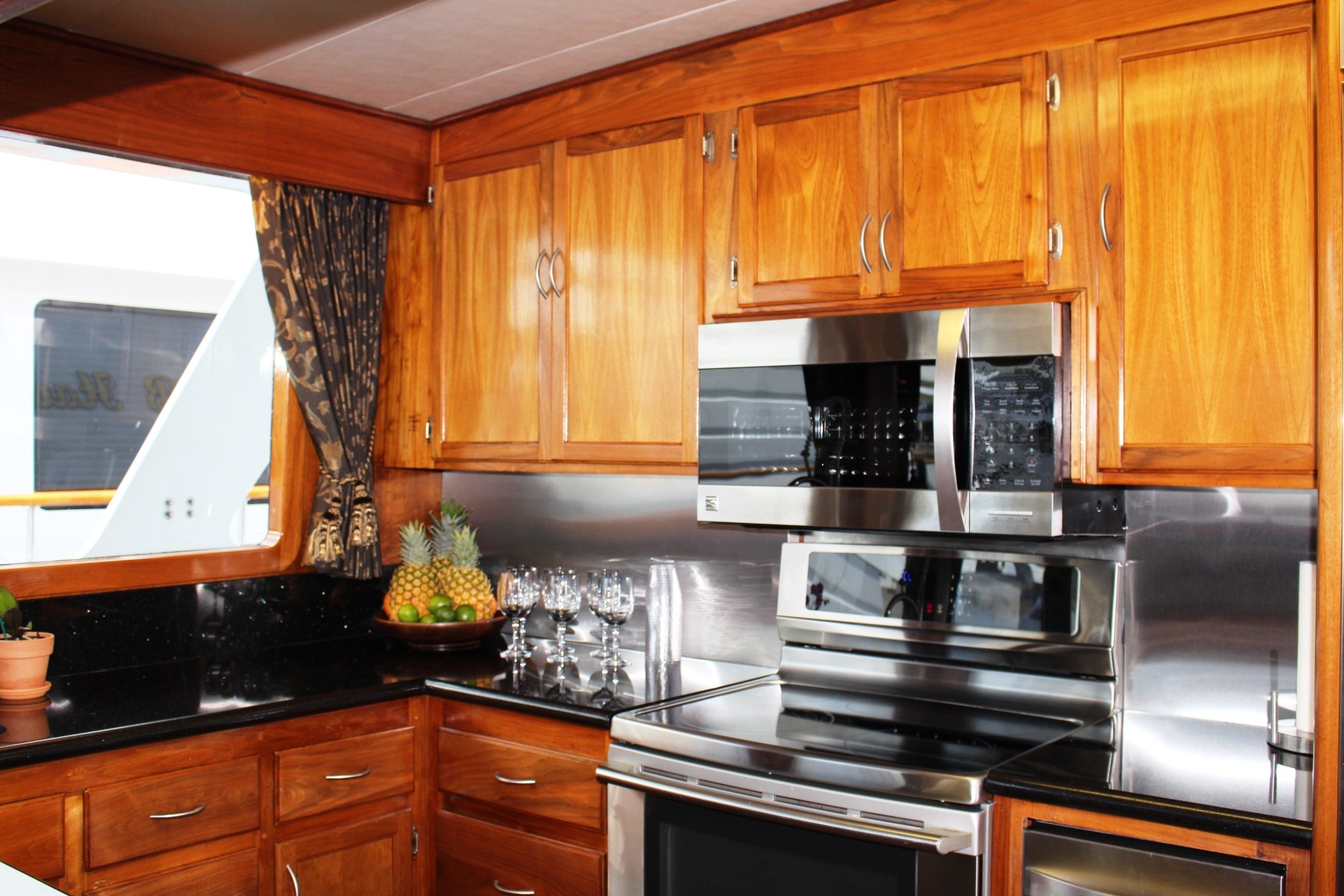 Aft of the master cabin, the private deck offers a seating nook and Jacuzzi tub. Above the master cabin is the flybridge, where plenty of additional seating and sunning can be enjoyed. All exterior decks can be accessed from both ...