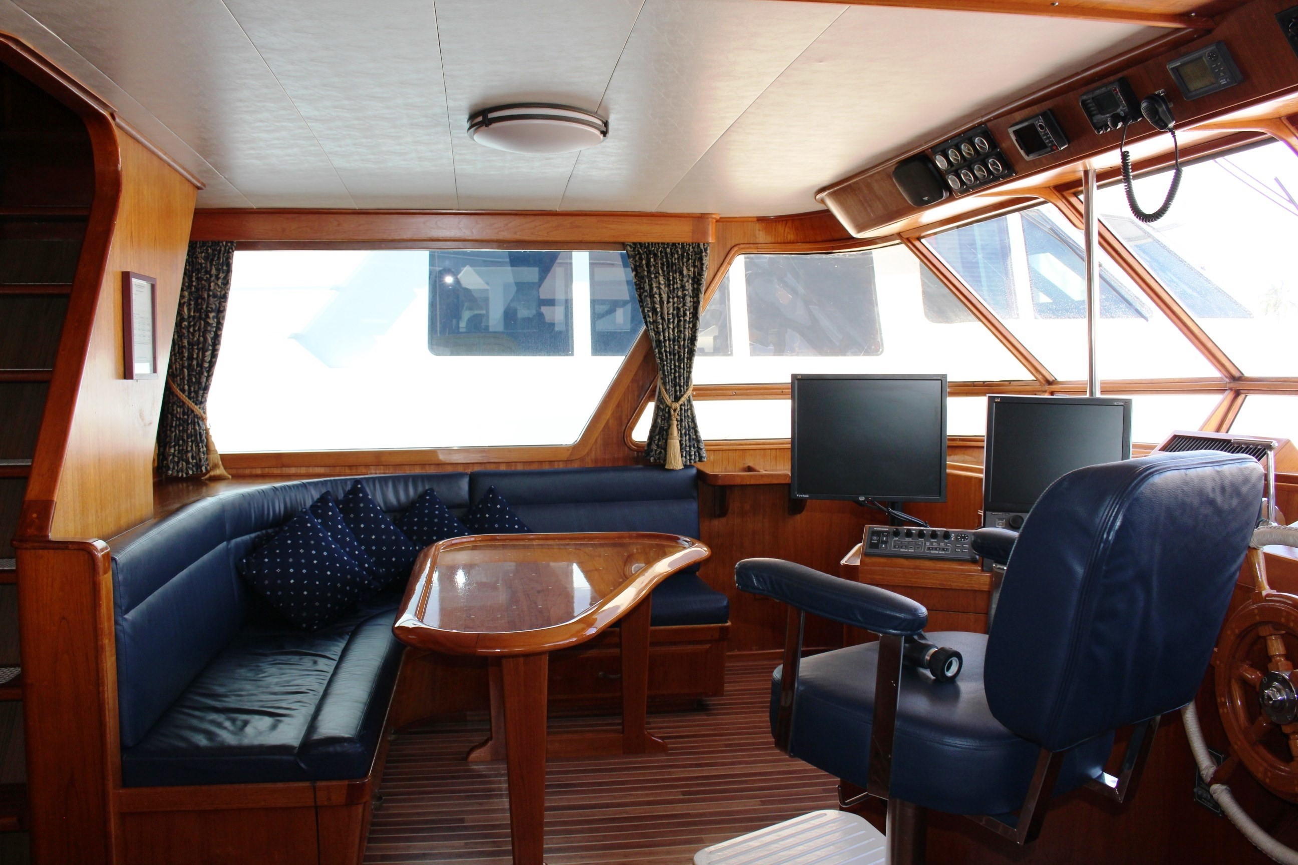 The aft deck is adjacent to the salon and offers a large teak deck space, alfresco dining option and easy access gate, to the extended swim platform. Side decks wrap around the yacht 360°, effortlessly enabling guests to walk forward and enjoy the built in upholstered seating.