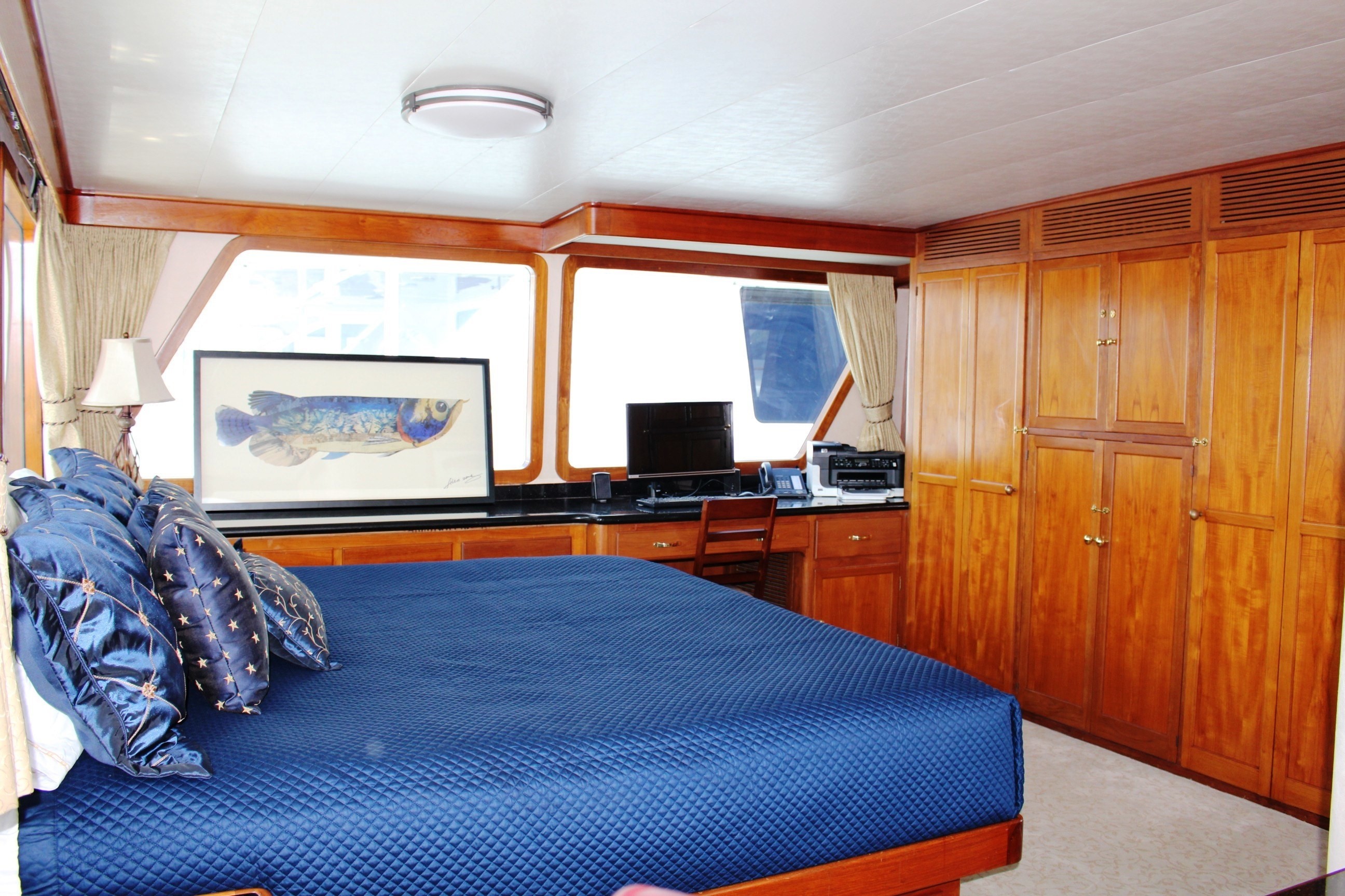 Side decks wrap around the yacht 360°, effortlessly enabling guests to walk forward and enjoy the built in upholstered seating. Aft of the master cabin, the private deck offers a seating nook and Jacuzzi tub. Above the master cabin is the flybridge, where plenty of additional seating and sunning can be enjoyed.