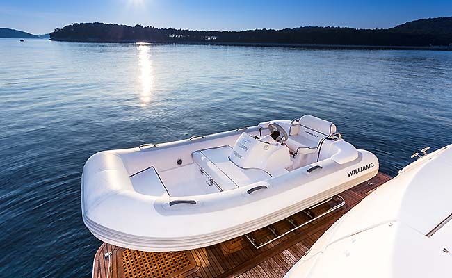 Yacht DISCOVERY is equipped with a Jet Tender Williams 325 - 105 BHP Engine, 2 x Tubes, Insane float for two persons, Water Skis, Wake board, Fishing gear, Snorkeling gear,