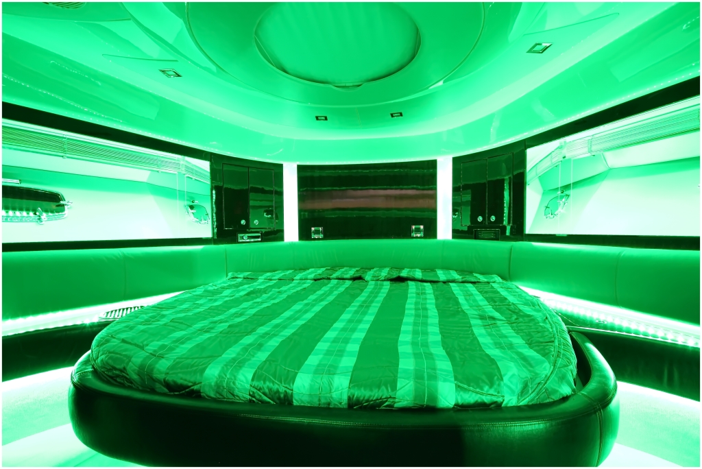 Guest accommodation is fore and aft of the lower salon, in 3 en-suite cabins.