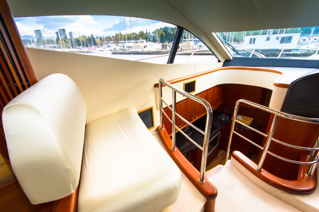 The aft deck is adjacent to the salon and boasts comfortable seating, an aft sunpad and partial shade. For the water enthusiasts, the full beam extended swim platform makes taking advantage of the good array of water toys on offer, irresistible. Sun lovers and star gazers will find the foredeck double sunpads perfect.