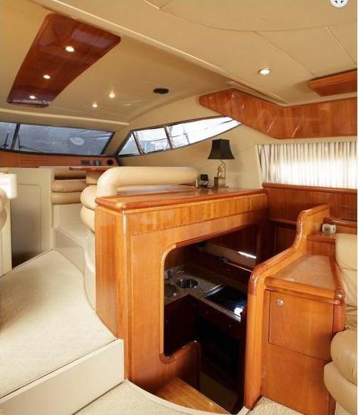 The galley is below decks to starboard, neatly tucked away, to provide additional guest space for relaxation. Forward, the interior helm station has further seating, enabling guests to enjoy the exhilarating speeds ANTARES II is capable of.