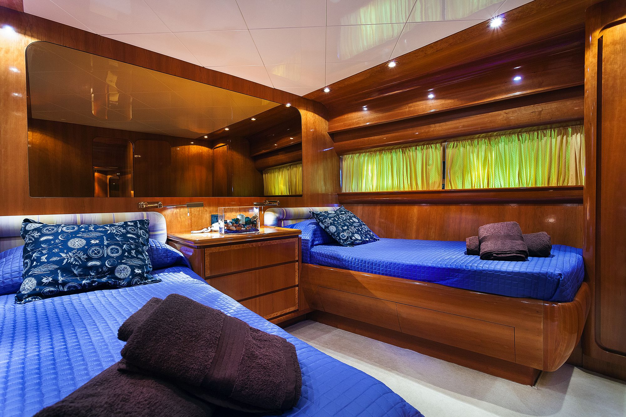 Accommodation is below decks, in 1 double master cabin and 2 twin cabins, each with en-suite facilities.