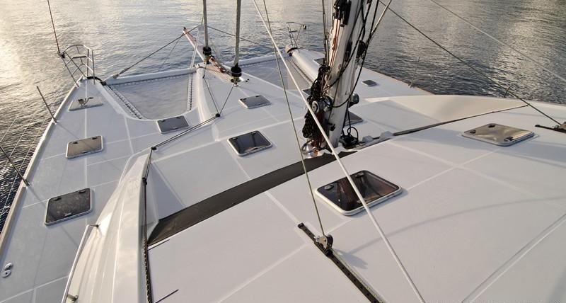 The wrap around main deck leads to 2 large trampolines, on the capacious foredeck. S/Y XENIA features an upper flybridge deck, perfect for sunning, lounging and enjoying the yachts power under sail. Water enthusiasts will find the 2 aft transoms ideal for accessing the azure blue seas and water toys effortlessly.