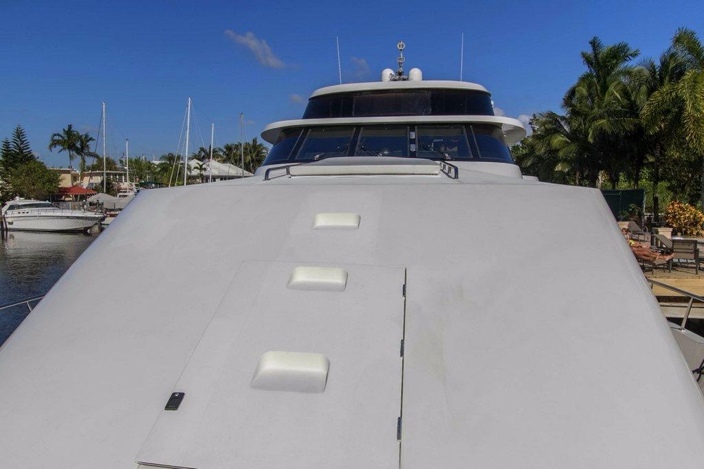 On the main deck is an open-plan salon and dining, offering a large L shaped sofa and coffee table on the starboard side and complete marble topped wet bar to port. The formal dining is forward of the lounge, seating 6 guests with ease. The foyer on the starboard side leads forward to a generous country style galley and casual dining area.