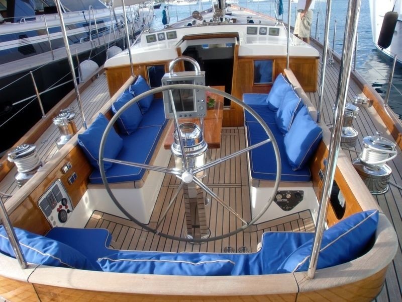 THE MEDITERRANEAN RATES ARE 'PLUS EXPENSES'. Luxury sailing yacht AURELIUS (ex ANNAGINE) accommodates 6 charter guests comfortably in two lovely and well appointed double cabins and also one further twin cabin. She also has two bathrooms.