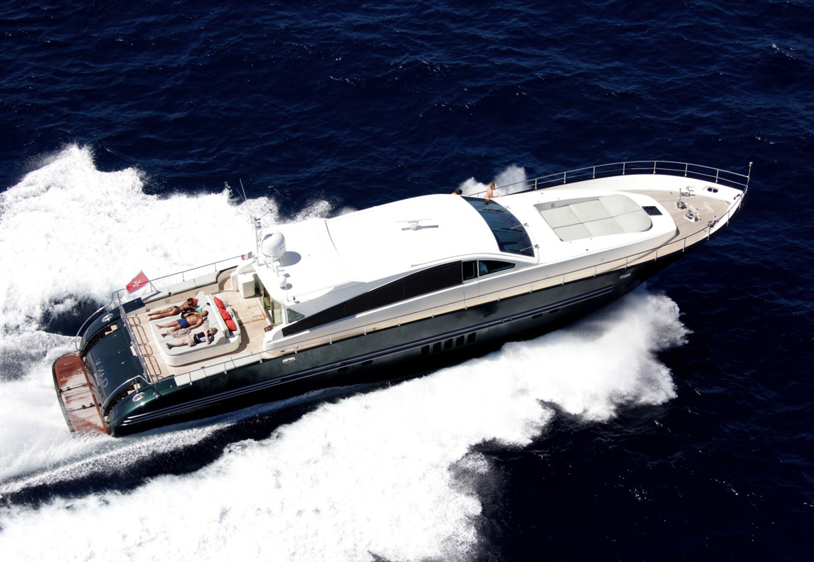 Motor yacht CLAN V is a performance Leopard Arno measuring 27m (88.7ft). Launched in 2005, the CLAN V yacht offers accommodation for up to 7 charter guests in 3 spacious cabins, each with private en-suite facilities. With a professional crew of 2, M/Y CLAN V is ideal for cruising the idyllic West Mediterranean on a luxury yacht charter.