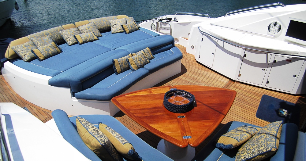 Aboard the performance Sunseeker Predator 82 yacht IMPULSIVE TOO, guests will find ample exterior living areas. Adjacent to the salon, via wide sliding glass doors, is the generous aft deck, complete with seating, alfresco dining option, large sunpad and wet bar/service area.
