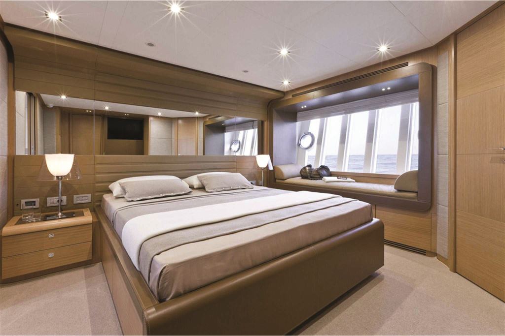 Guests aboard Ferretti 800 find spacious living and entertainment areas, perfect for relaxation.