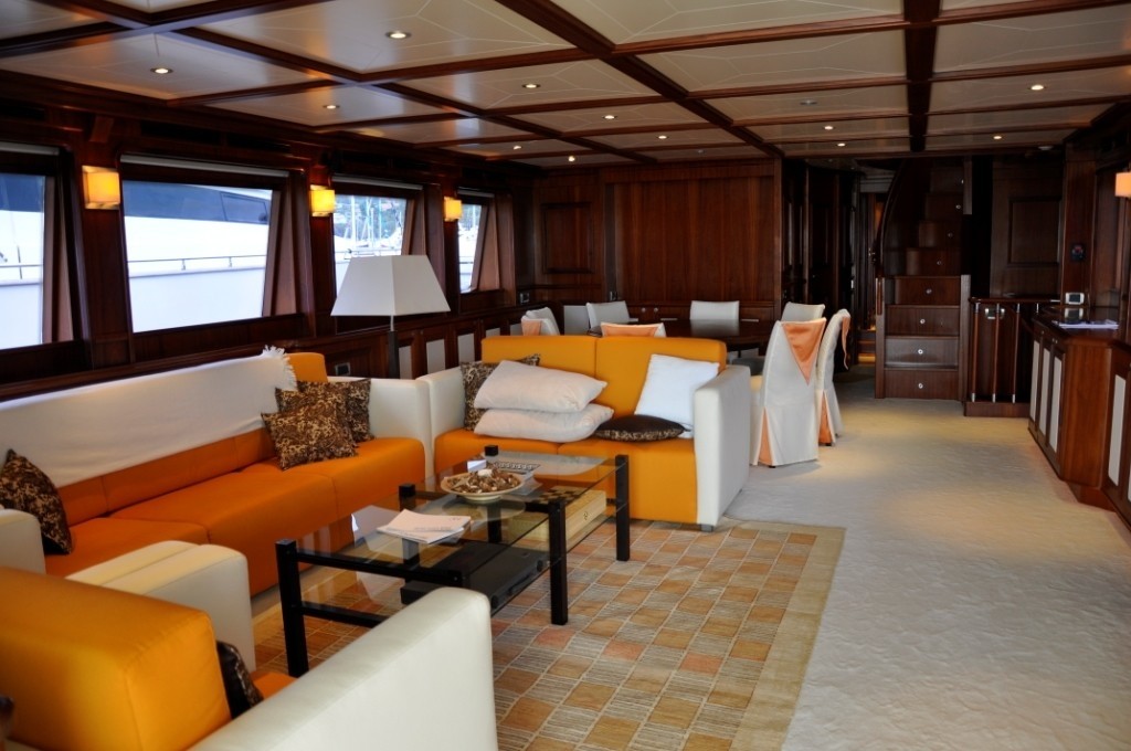 A further VIP cabin has a double bed. Two guest cabins each have side by side twin beds and a Pullman berth. All 5 cabins are finished to a high standard, with fine cherry wood panels, intricate joinery and elegant marble en-suite facilities.
