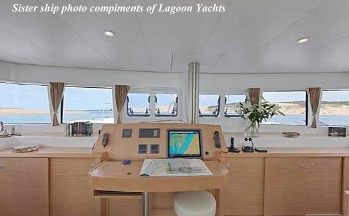The salon and dining is an open plan, with 2 large sofas, coffee table and dining table. Vertical windows surround the salon, bringing in ample natural light and boasting further space due to the design. Wide sliding glass doors lead directly onto the shaded aft deck, ideal for entertaining large or small groups.