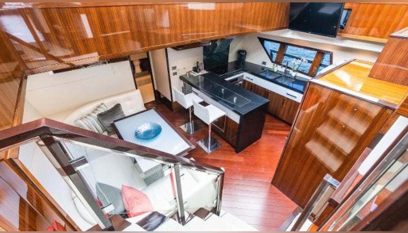 Below decks, the well-appointed galley and formal dining area are amidships. Aft of the galley is the full-beam master stateroom, while forward are a further 3 guest cabins, all with private en-suite facilities.