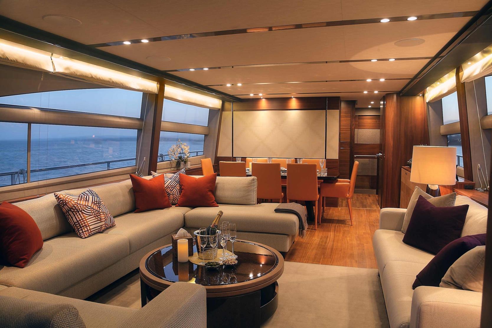 Stepping into the main salon, there is a generous lounge aft and open plan formal dining forward. The space is surrounded by windows, providing fabulous natural light and great views. Below decks are 2 full beam cabins, one double cabin and one twin cabin.
