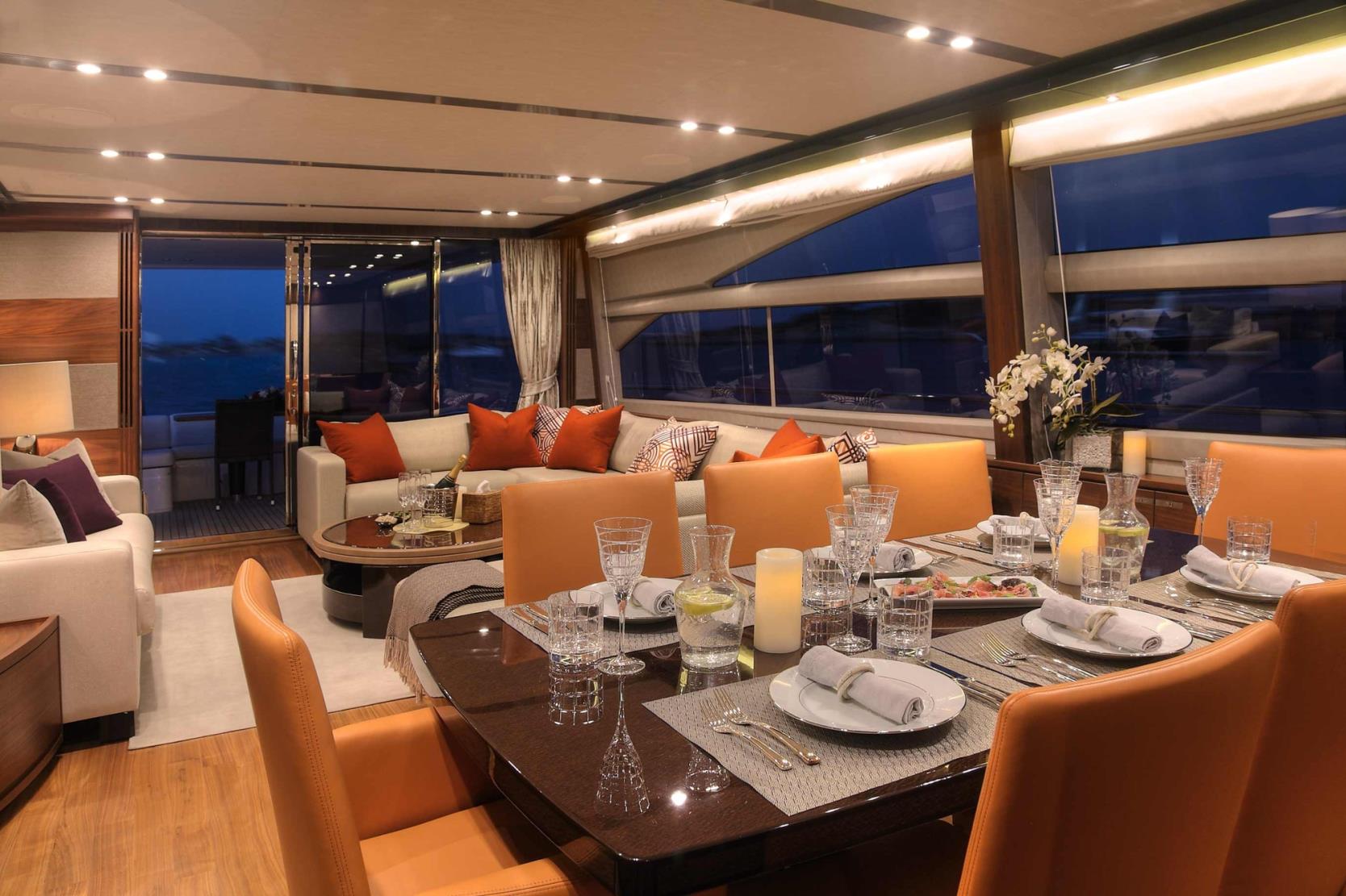 Stepping into the main salon, there is a generous lounge aft and open plan formal dining forward. The space is surrounded by windows, providing fabulous natural light and great views. Below decks are 2 full beam cabins, one double cabin and one twin cabin.