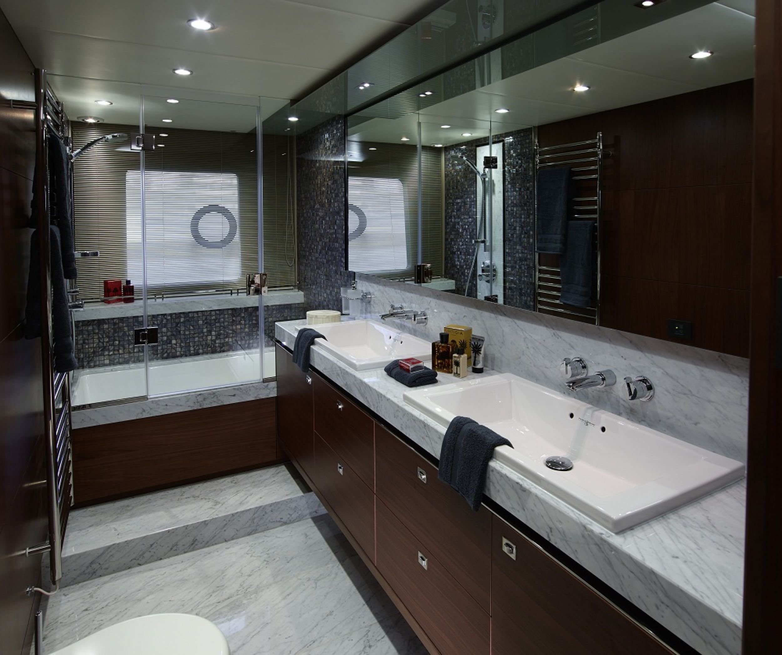 Stepping into the main salon, there is a generous lounge aft and open plan formal dining forward. The space is surrounded by windows, providing fabulous natural light and great views. Below decks are 2 full beam cabins, one double cabin and one twin cabin.