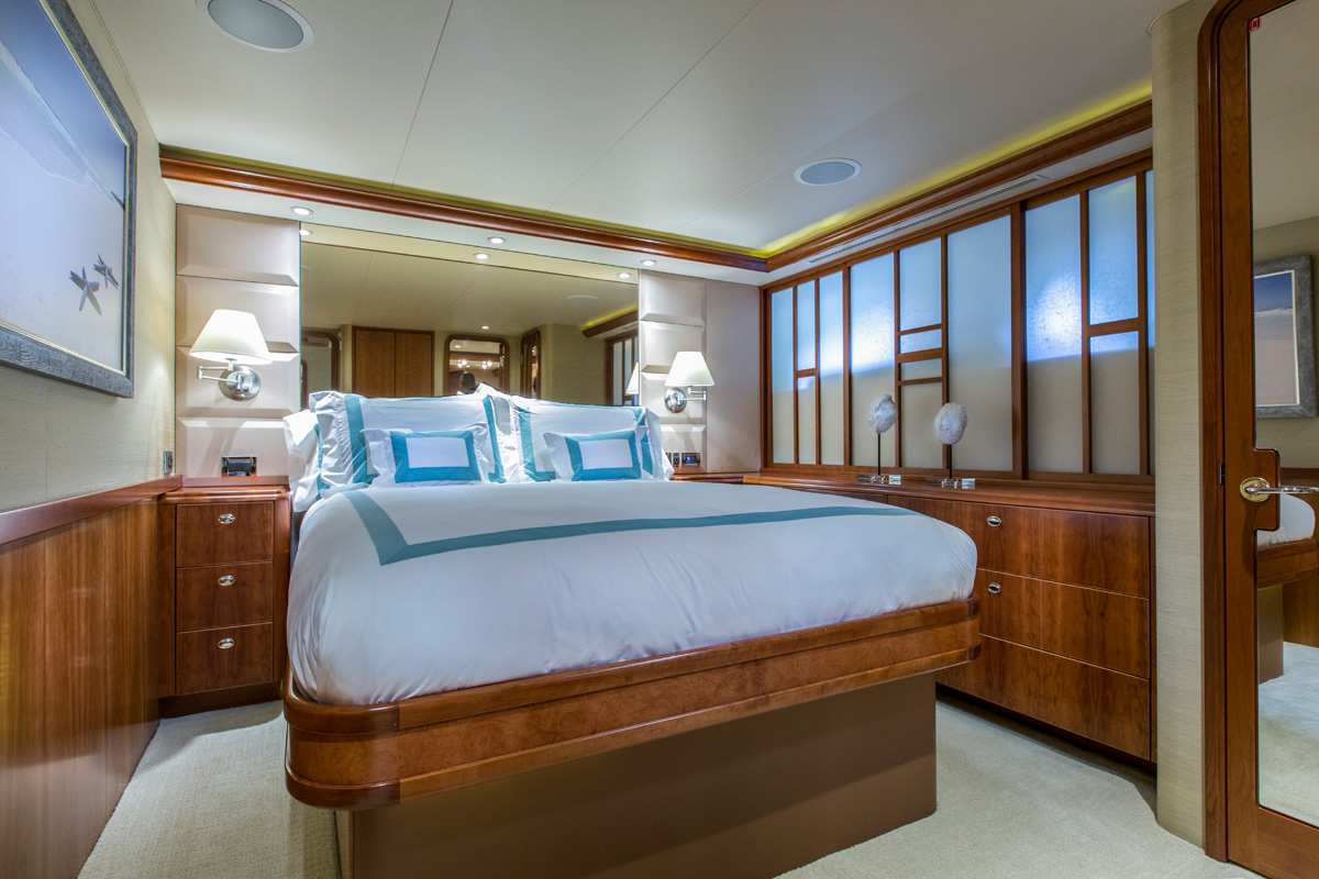 The OASIS motor yacht boasts fabulous exterior living areas, ideal for her cruising grounds. Enjoy a cool cocktail from the marble topped wet bar on the aft deck, perhaps while catching the latest in sport, from the built in TV.