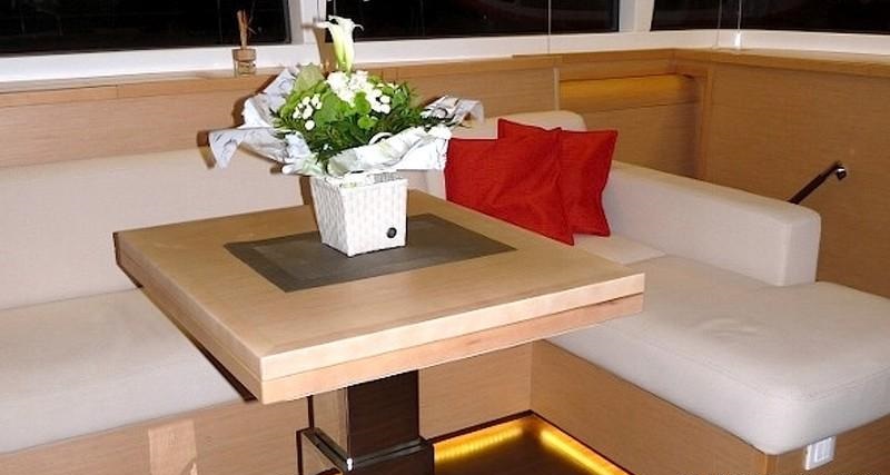 The salon is a contemporary open plan, with a generous lounge to port and full service galley to starboard. Surrounding vertical windows allow ample light to infuse the space, while providing beautiful views. Guest accommodation is in 4 en-suite double cabins, each fully air conditioned.