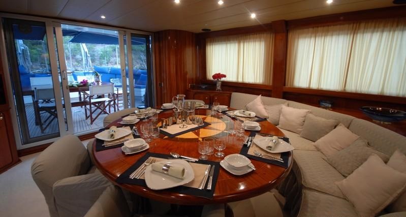 Crewed charter yacht RIGEL is fully air conditioned throughout and boasts ample interior space to relax.