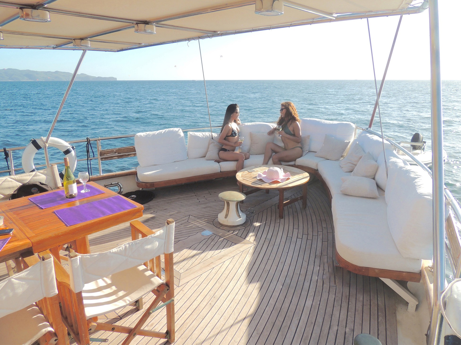 The aft deck features optional shade, plenty of seating and an alfresco dining table. The main decks wraps around the yacht, leading to a generous foredeck, perfect for soaking up the East Mediterranean sun. A further sunning area boasts full sunpads on the cabin house.