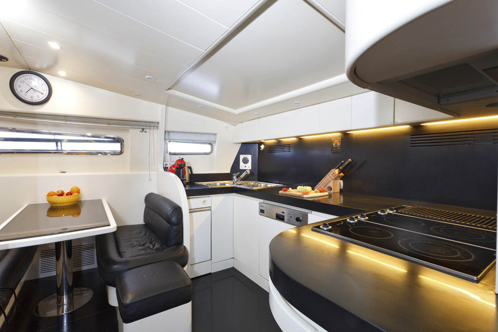 A foyer on the starboard side leads to the full beam separate formal dining area, where all ten guests may dine in style. Guest accommodation is below decks, in 4 lavish cabins.
