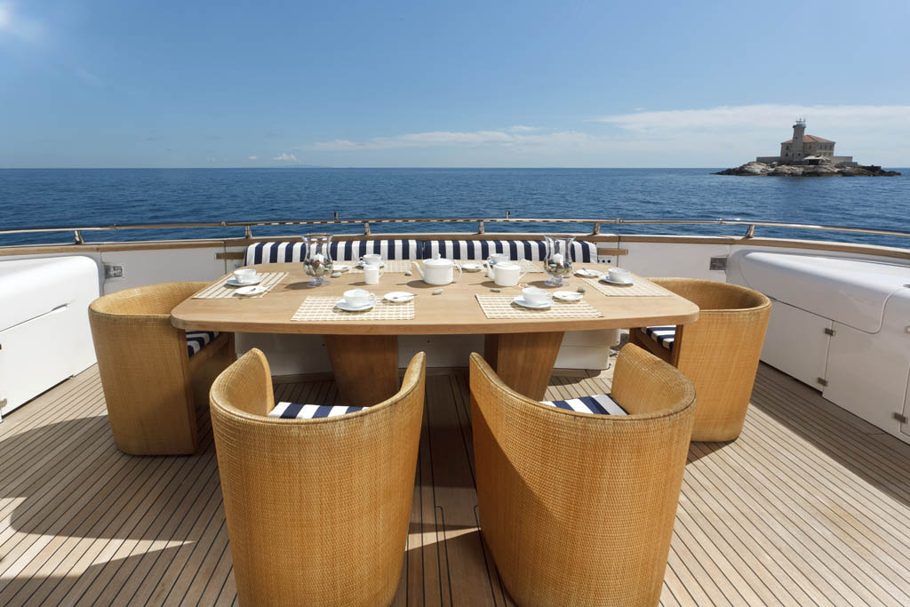 NOTABLE FEATURES: ~ Inviting atmosphere throughout ~ Great outdoor spaces for enetertaining ~ Large windows in the salon ~ Alfresco dining ~ Swim platform ~ Water toys ~ Sunpads ~ Bar