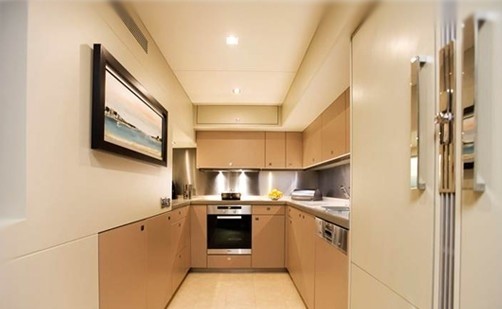 The salon and dining is an open plan, boasting plenty of relaxing and entertaining options. The lounge offers 2 generous sofas, reclining chair, coffee tables and a full entertainment system. Forward is a formal dining table, seating up to 8 guests with ease.