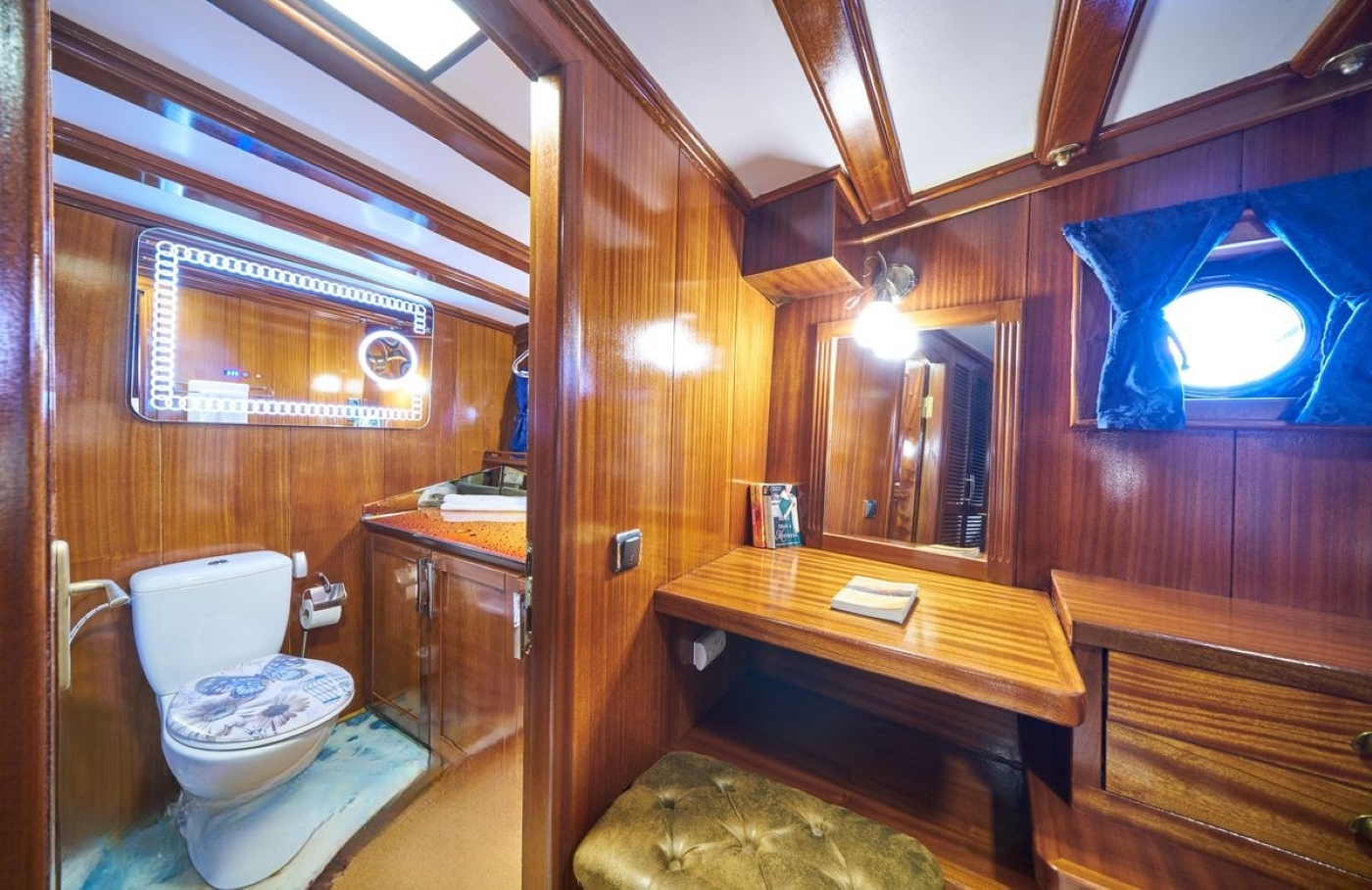 Below decks, fore and aft are 6 guest cabins. The crew has separate quarters, ensuring guest privacy.