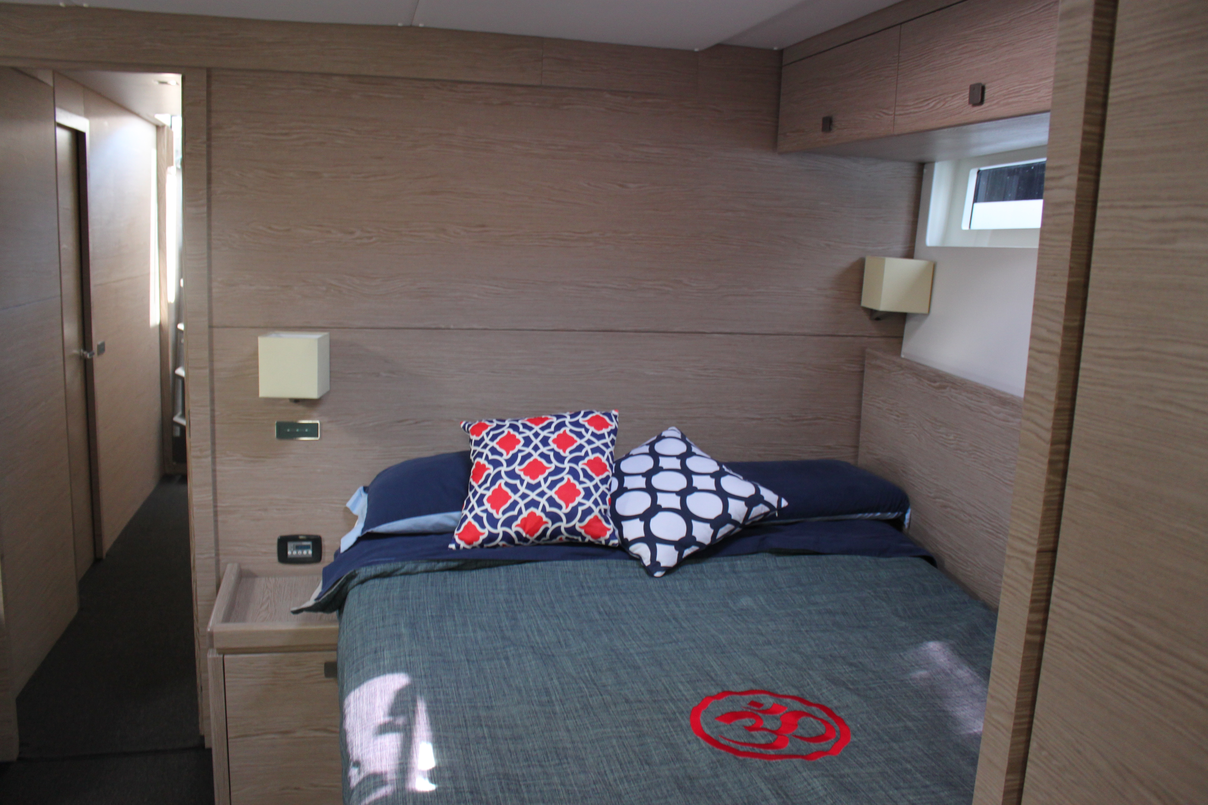The yacht provides accommodation to 8 charter guests in 3 cabins equipped with custom entertainment systems. There is also accommodation for three crew members.
