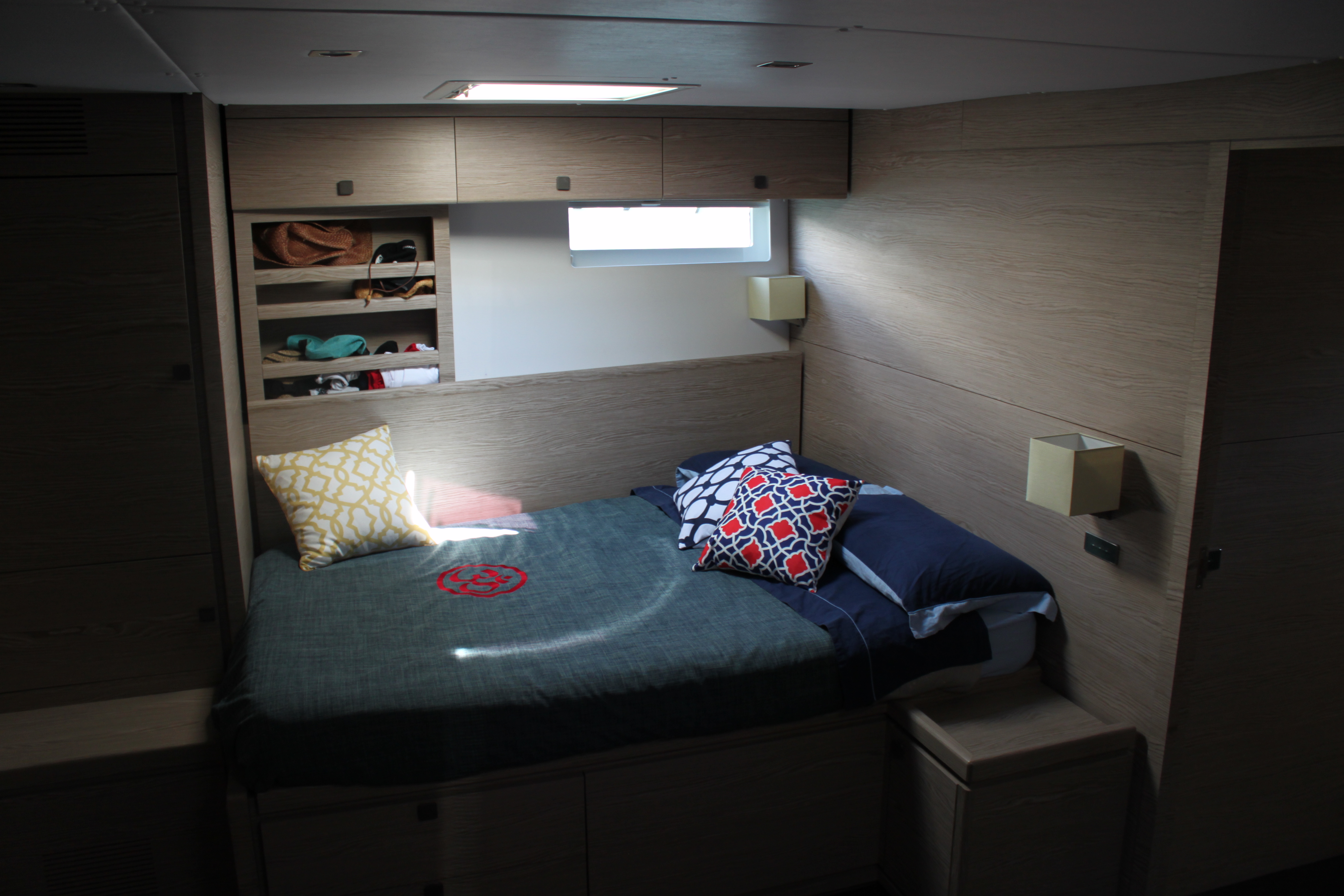 The yacht provides accommodation to 8 charter guests in 3 cabins equipped with custom entertainment systems. There is also accommodation for three crew members.
