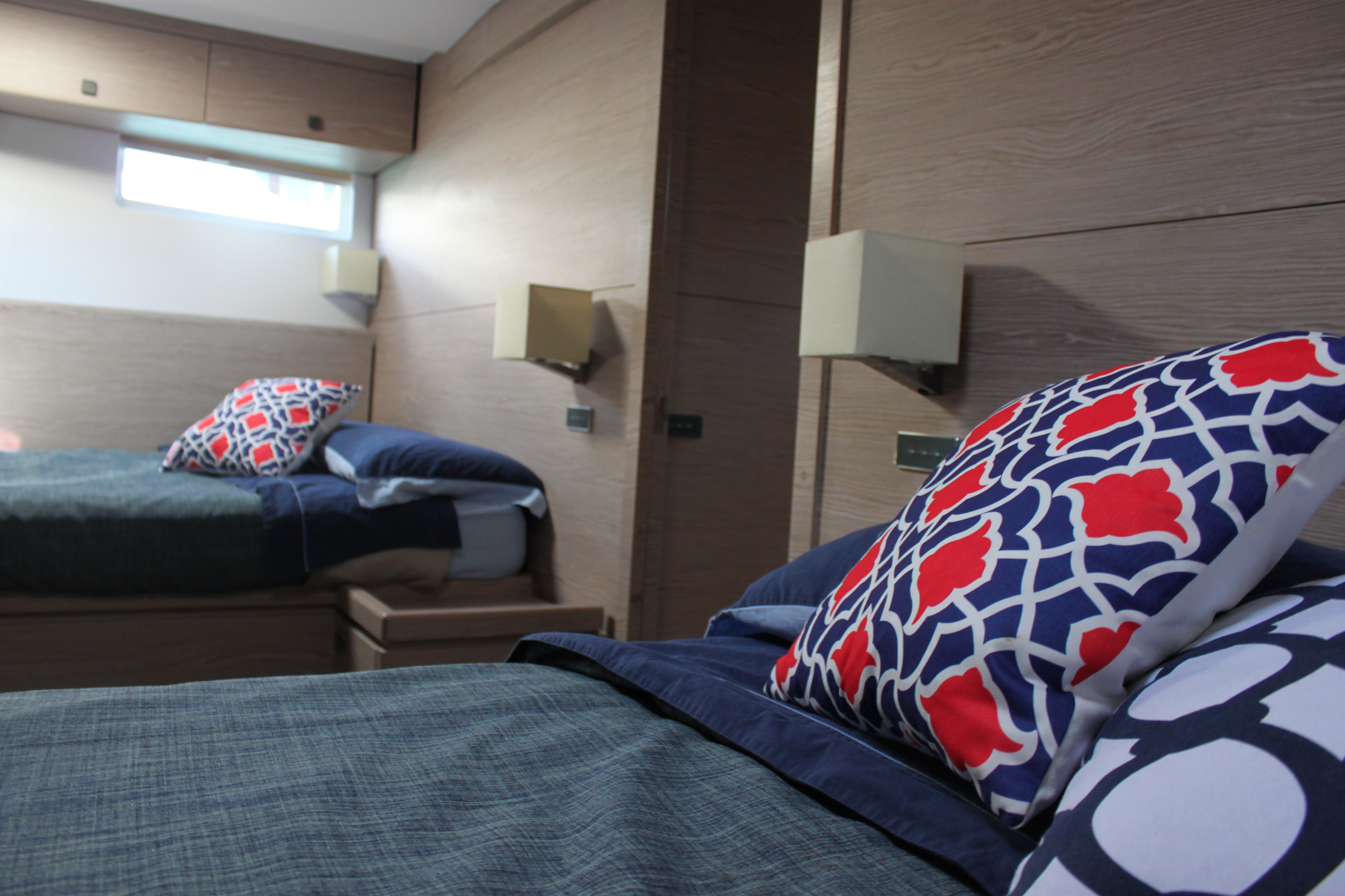 Dual helms aft ensure the captain has the perfect vantage point for performance sailing. For the keen water enthusiasts, the wide open transom allows for effortless water access.