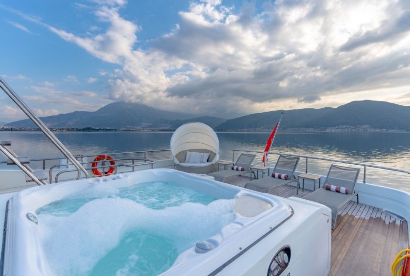 M/Y PANFELISS boasts fabulous exterior living on 2 decks, perfect for warmer climates. The aft deck is exceptionally generous and offers built-in seating, an alfresco dining table and optional complete roll down enclosures, ideal for any weather or occasion.