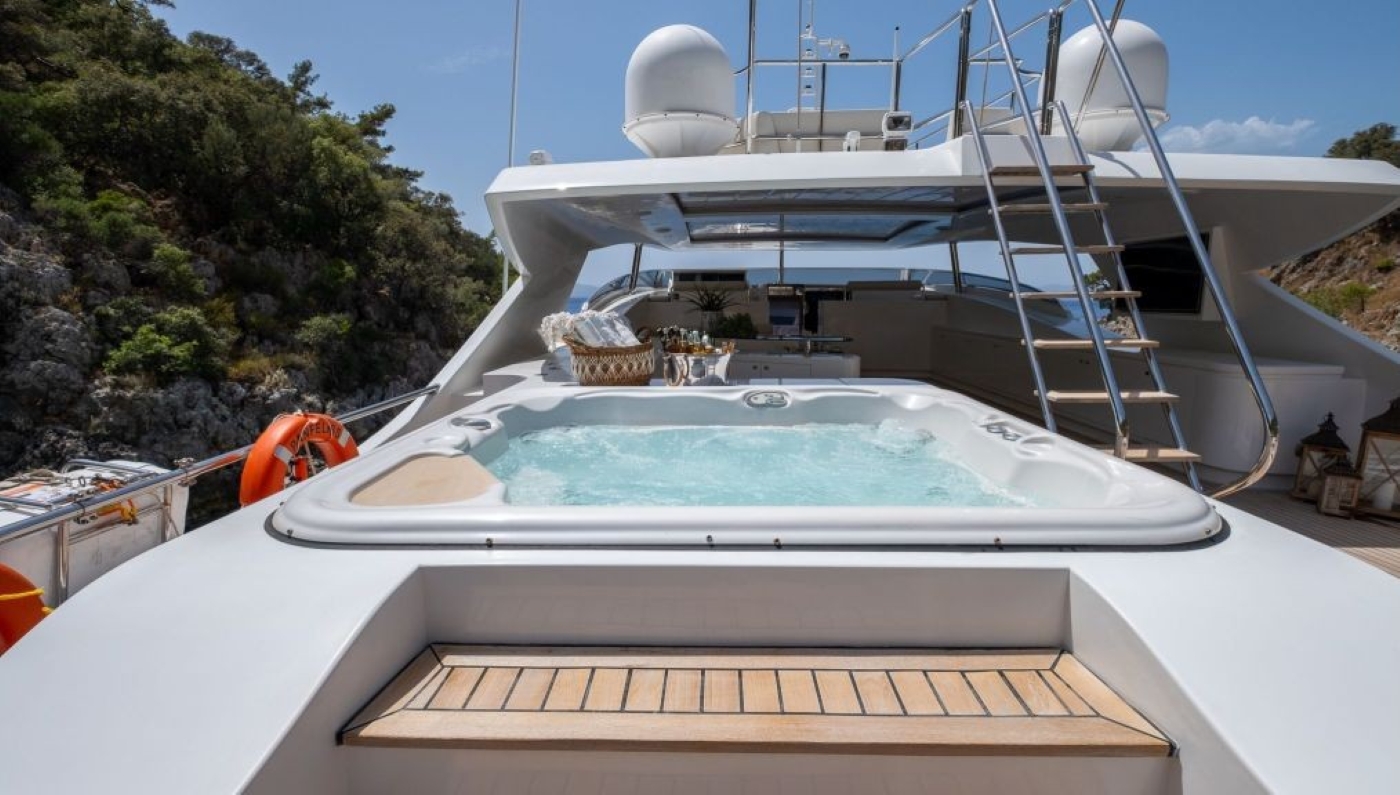 M/Y PANFELISS boasts fabulous exterior living on 2 decks, perfect for warmer climates. The aft deck is exceptionally generous and offers built-in seating, an alfresco dining table and optional complete roll down enclosures, ideal for any weather or occasion.
