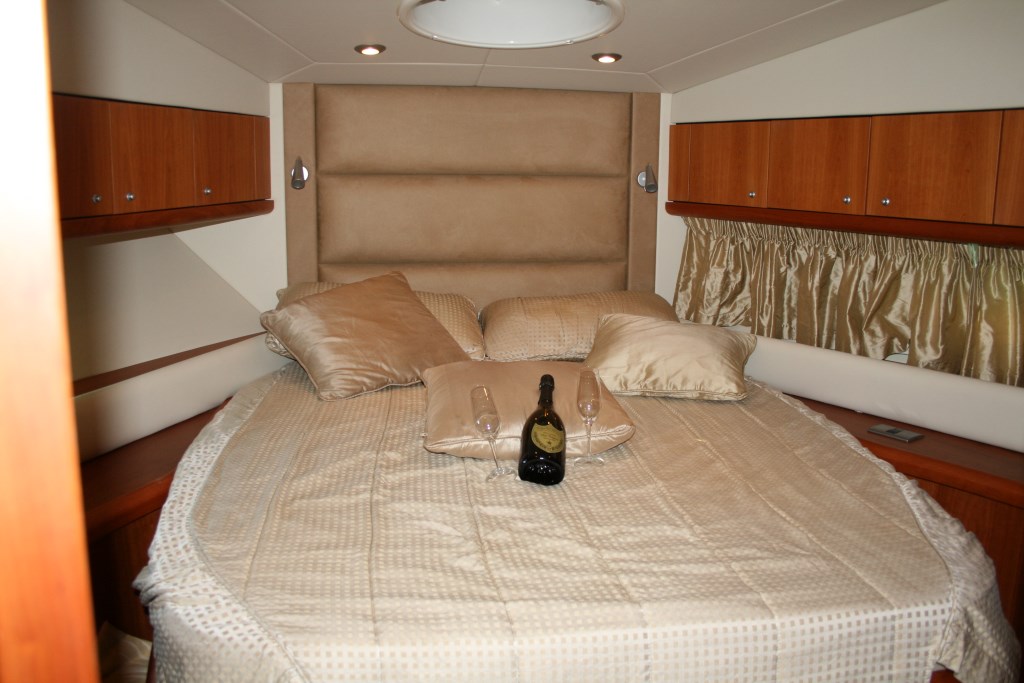 A curved stairs case on the forward port side leads to the fully equipped galley, continuing on to the 3 guest cabins.