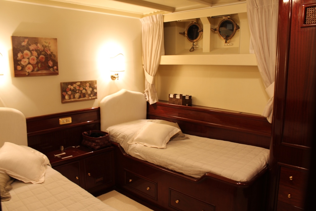 Accommodation aboard the yacht DP MONITOR is on the lower deck in 1 master, 1 VIP and 3 guest cabins.