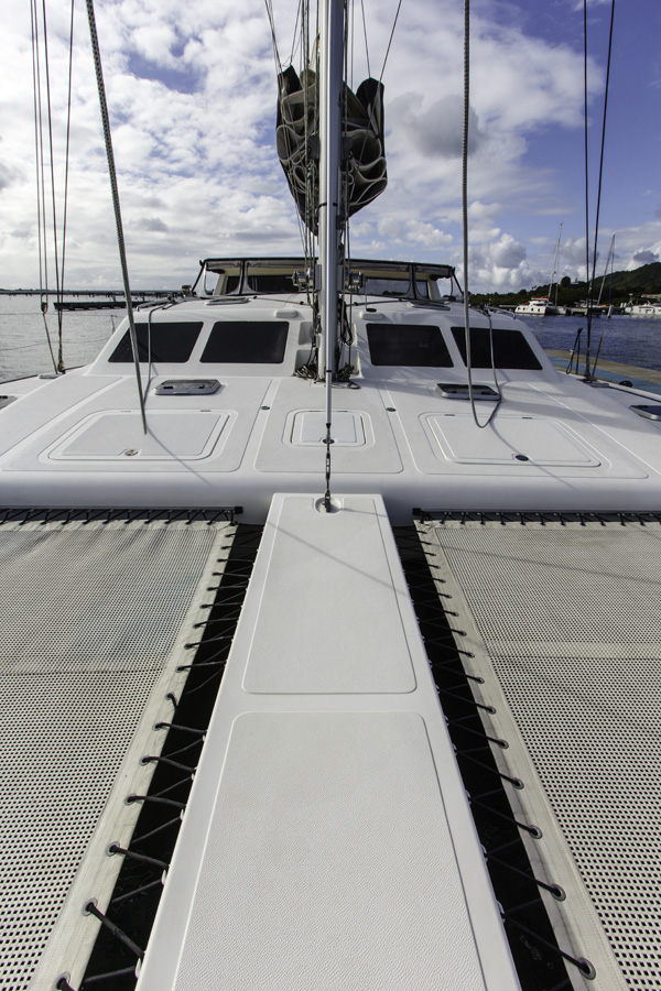 A capacious foredeck and dual trampolines are perfect for relaxing and sunning, both an anchor and under sail.