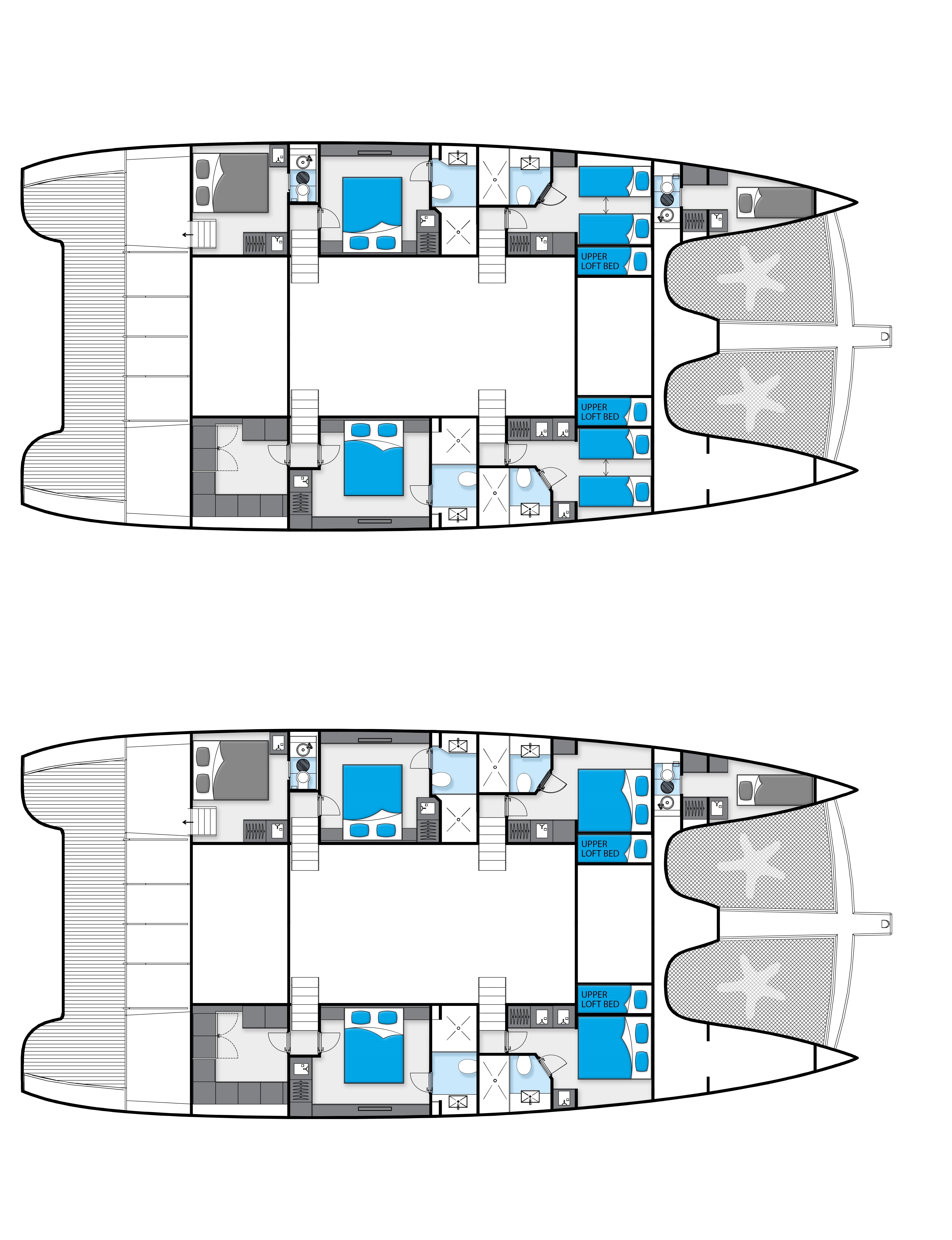 The forward trampolines aboard 19th Hole yacht are an ideal place for sunbathing, and the shaded flybridge is perfect for al fresco dining and socialising. The aft deck is another great place to unwind and enjoy a cocktail or two.