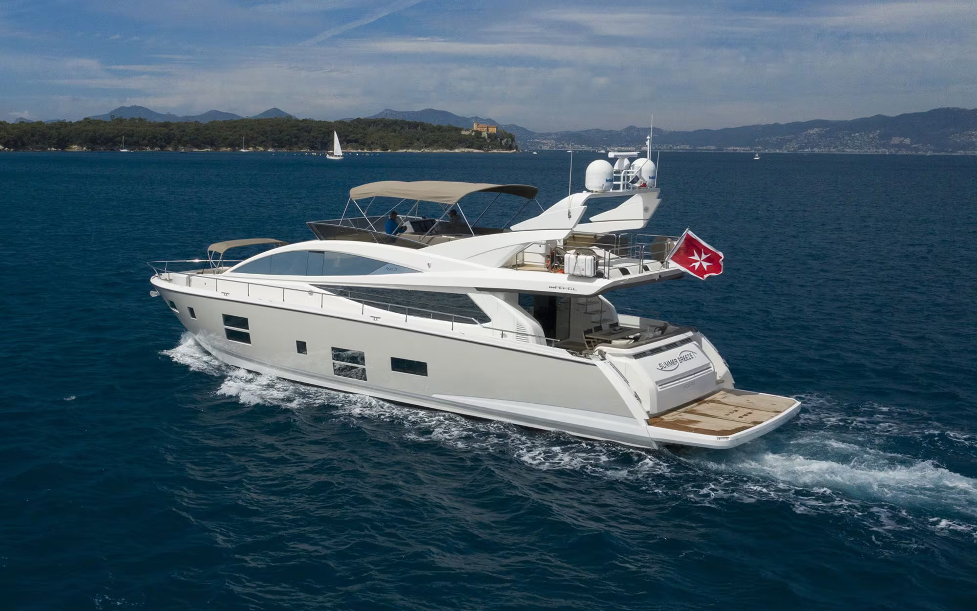 Built by the British shipyard Pearl Yachts and designed by the renowned Bill Dixon, luxury motor yacht SUMMER BREEZE was launched in 2014 and measures 23m (75ft). The award winning Pearl 75 model boasts sleek lines, innovative features and definitive style.