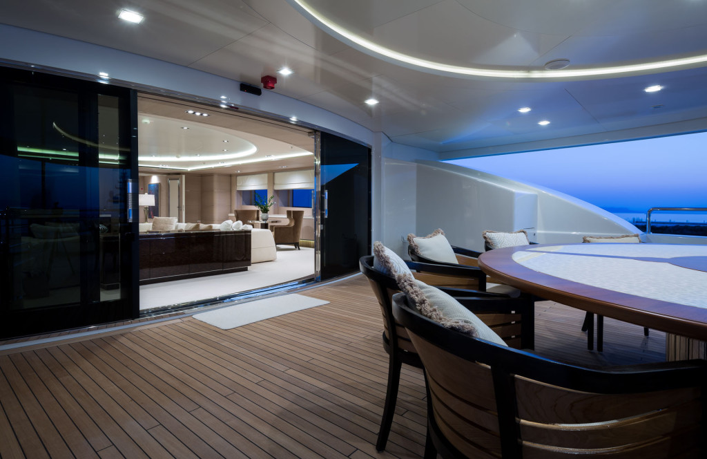 She is powered by CAT 3516-C 2350KW 1800 RPM diesel engines, offering cruising speeds of 15.5 knots and top speeds of 18 knots. State of the art at anchor and underway stabilizers ensure optimum comfort.