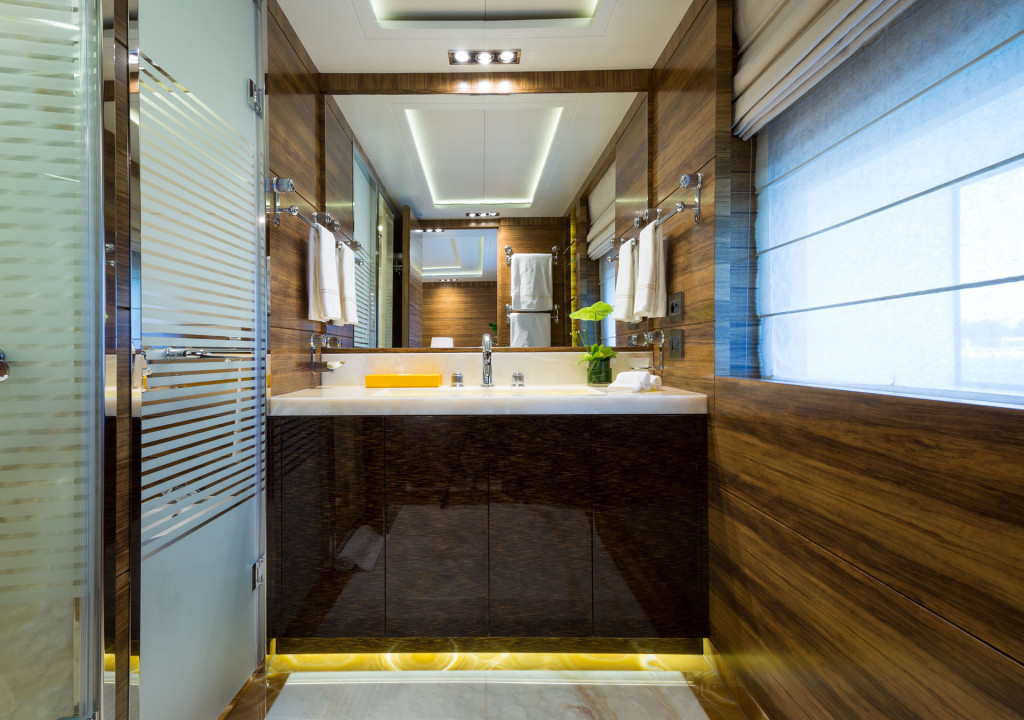 The sundeck is well-appointed and features an alfresco dining option, wet bar and BBQ station, deluxe Jacuzzi tub with surrounding sunpads and a full beam forward seating space.