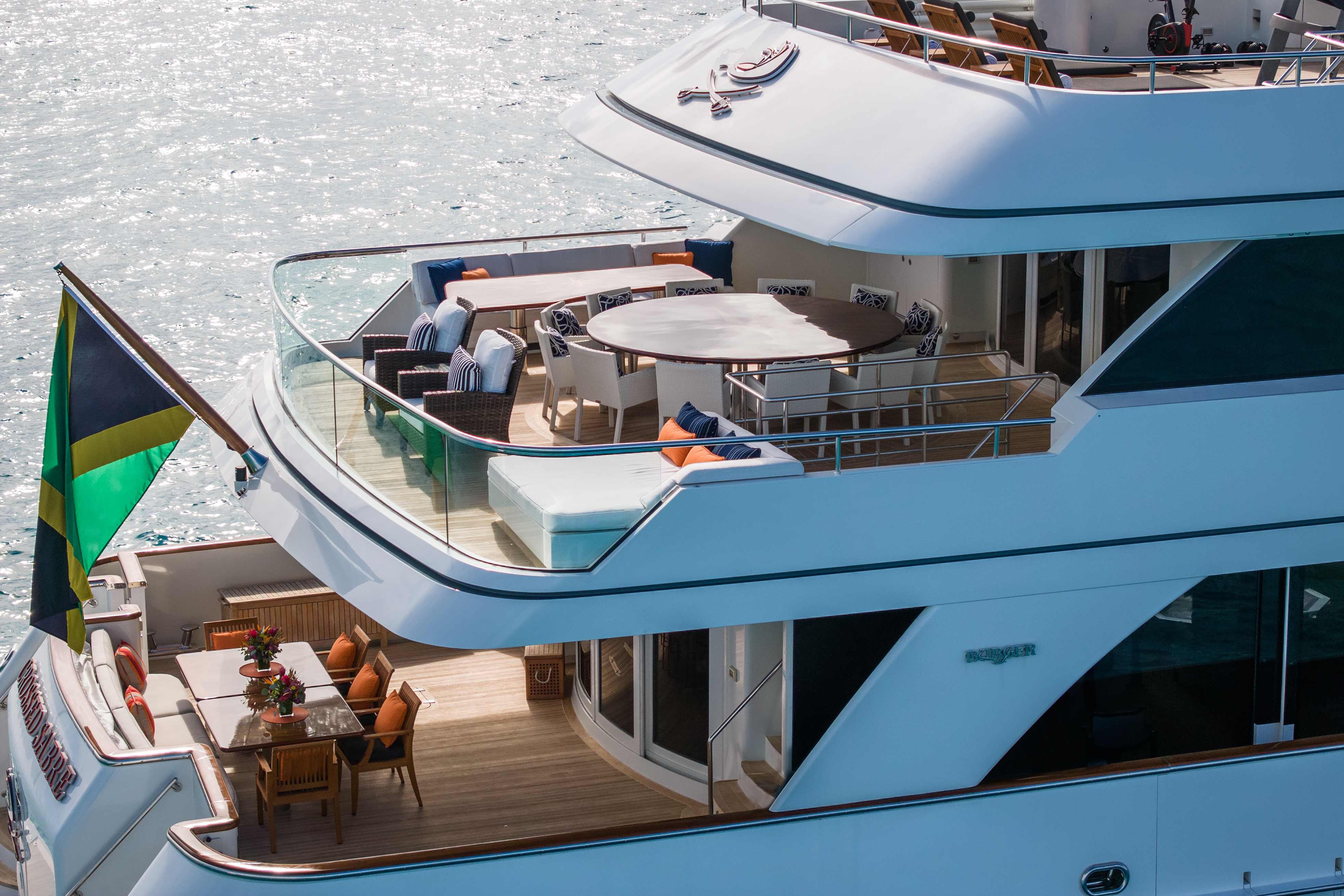 NOTABLE FEATURES OF CROSSED SABRE: ~ Main deck Owner's cabin with Jacuzzi tub ~ Elevator ~ Sundeck with spa pool and BBQ area ~ Sun pads ~ Shaded alfresco dining area for 12 guests ~ Gym equipment ~ Water toys ~ Netted Jellyfish ...