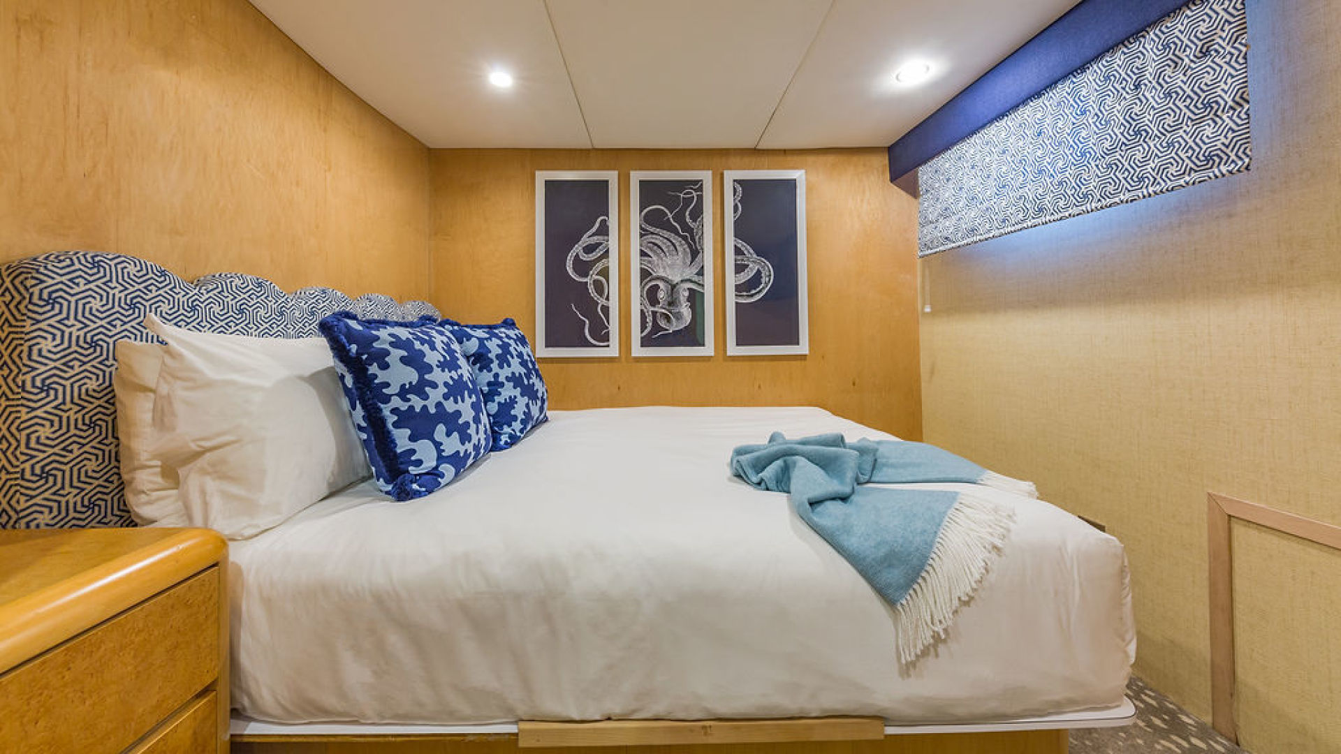 Measuring 33.53m (110ft), the yacht offers accommodation in 5 en-suite cabins, for up to 10 charter guests and has a professional, friendly and trained crew of 4.