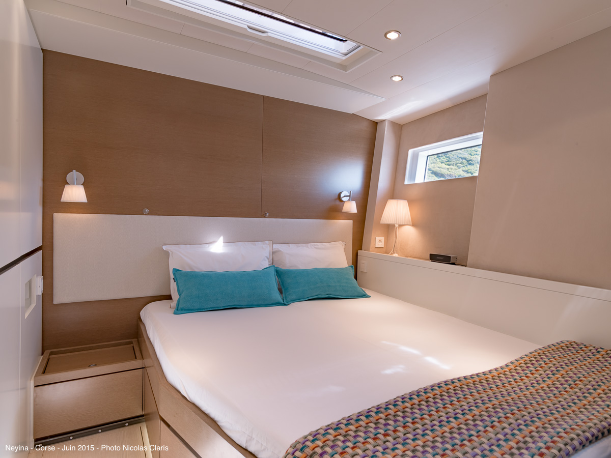 She accommodates 6 charter guests in one master cabin, one double guest cabin and one cabin with bunk beds, all with en-suite bathroom.
