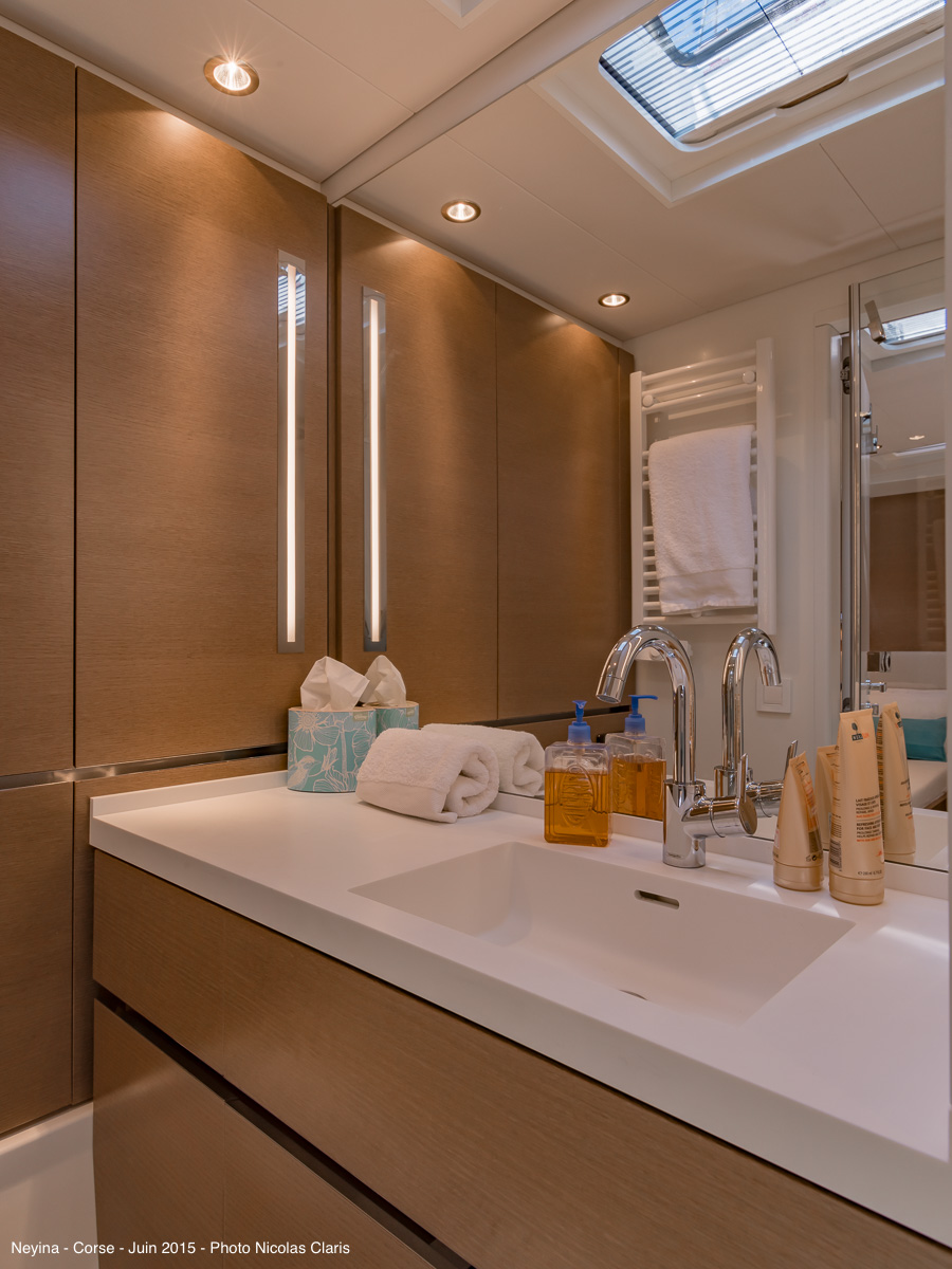 ~ Deck shower and swim platform, bimini and sun awning, sunbathing cushions, beach towels.