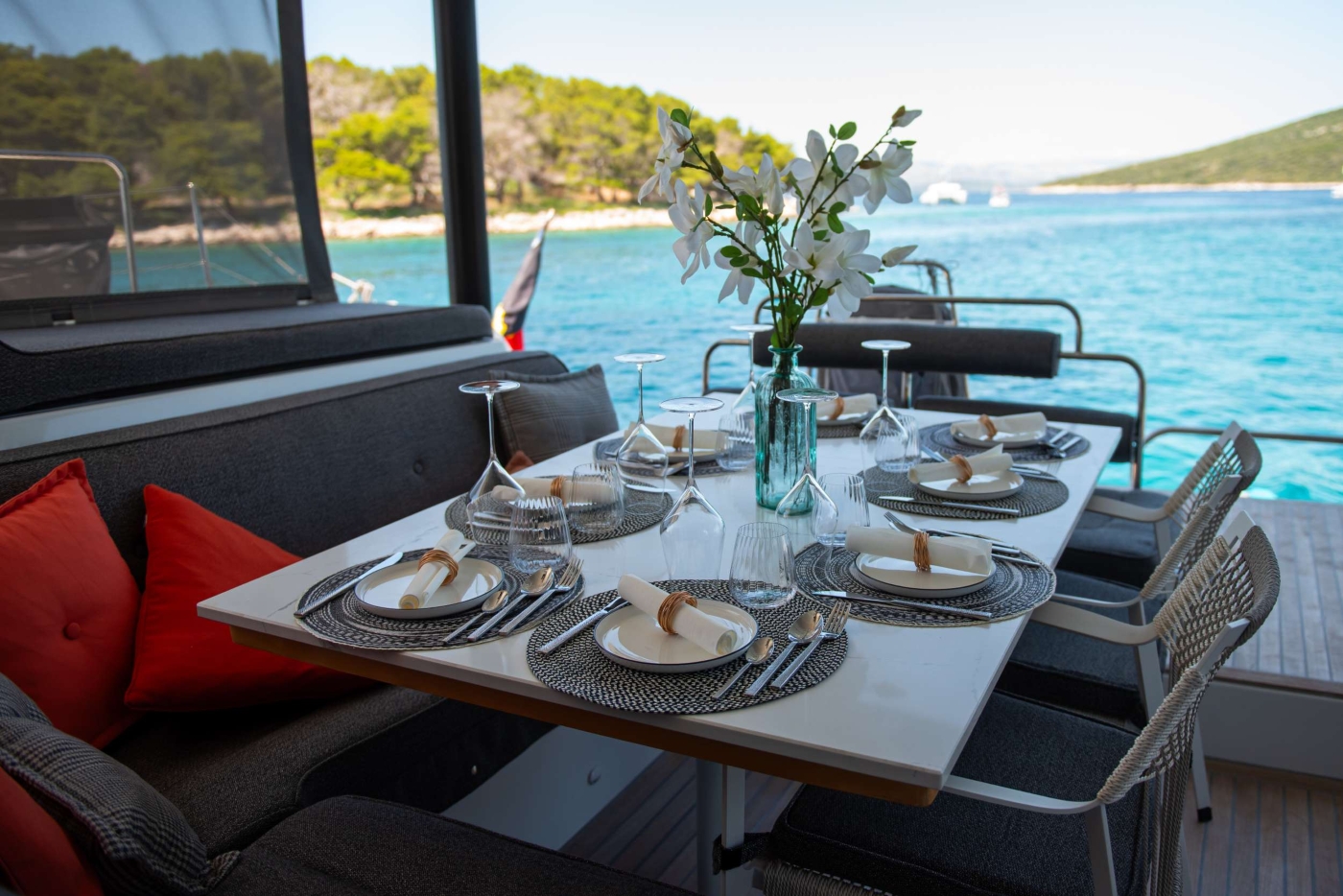 On deck, there are plenty of areas to enjoy, whether entertaining or simply enjoying the sunshine.