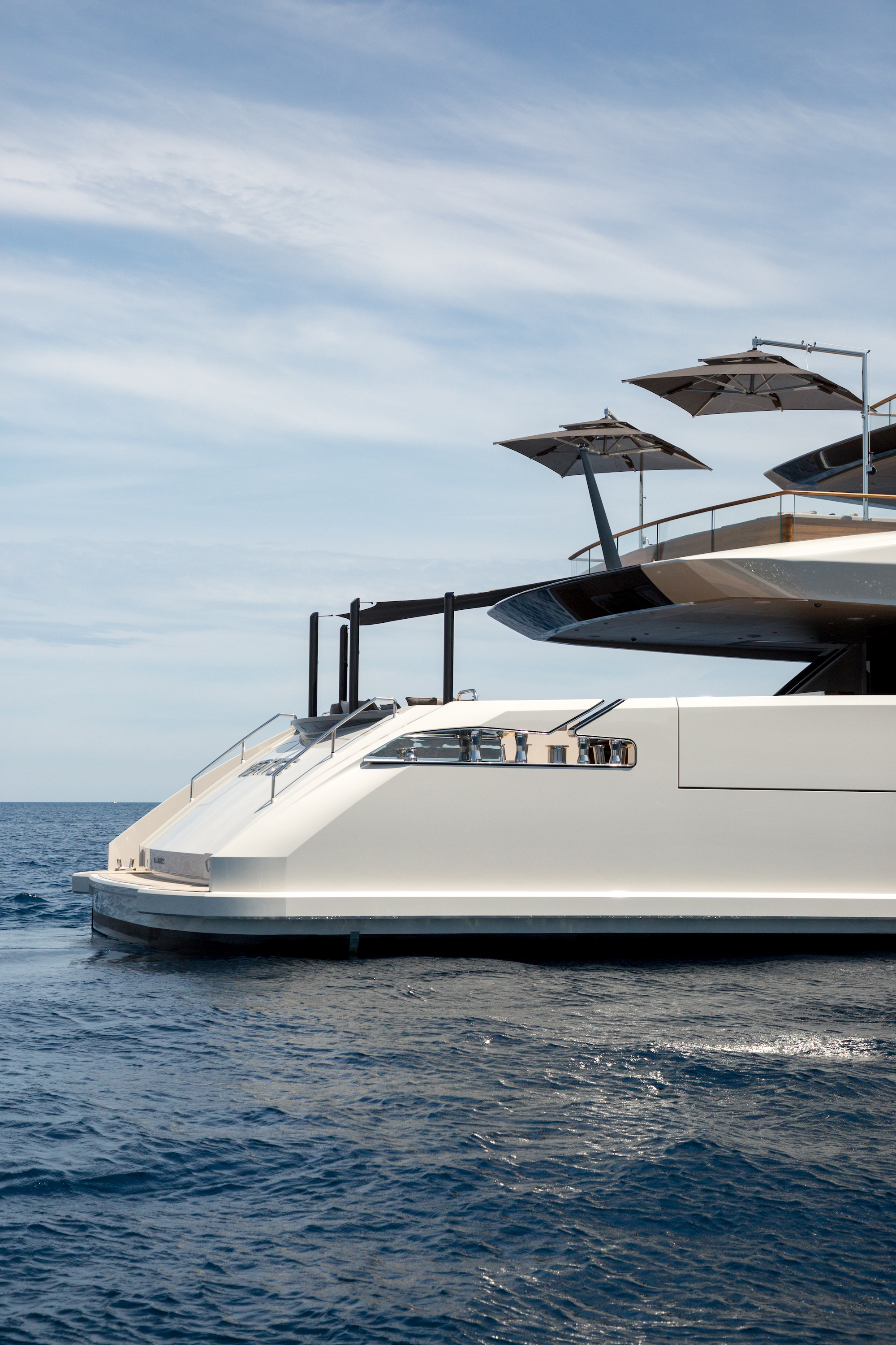 Also, there is a gym, home cinema, a 7-metre tender garage, as well as floor to ceiling windows and hydraulic balconies in the master cabin and on the aft deck.