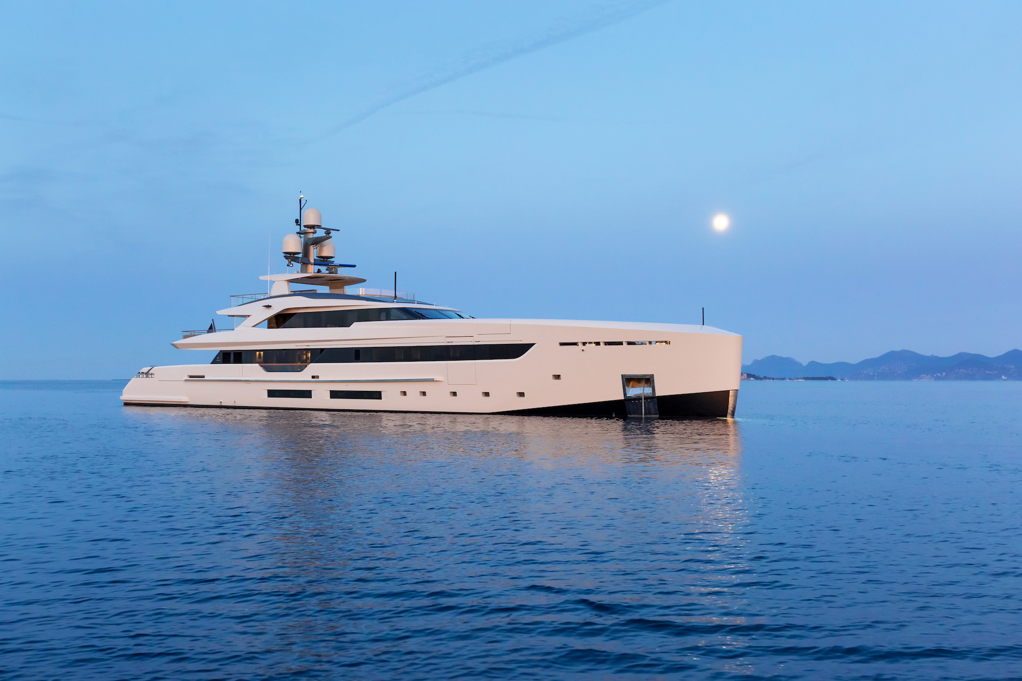 Side decks lead forward to an additional seating area on the foredeck. On the top deck, relax in ultimate style, with yet another alfresco dining table, wet bar, seating and chaise loungers.