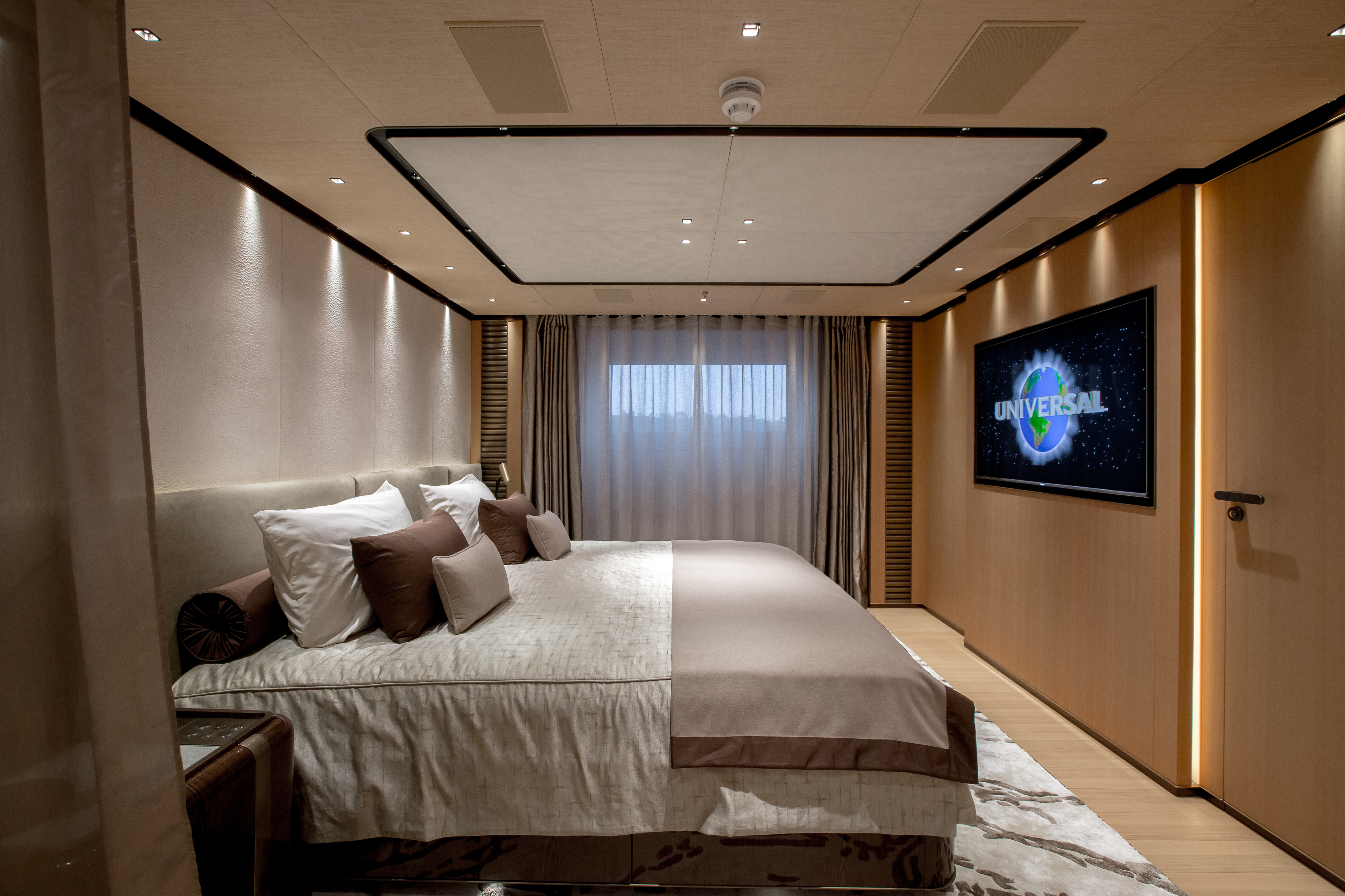 The luxurious Master stateroom and VIP cabins are forward of the salon and dining. An upper deck offers a sky lounge aft and the bridge forward. Tankoa superyacht Vertige provides deluxe accommodation in six cabins, including the main deck full-beam master and VIP suite, as well as four lower deck cabins for up to 12 charter guests.